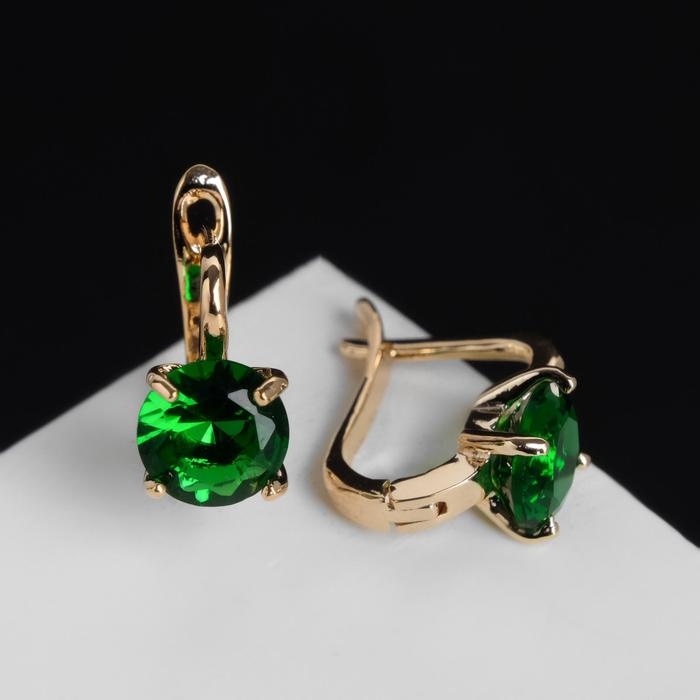 Серьги со стразами «Блум», цвет зелёный в золоте