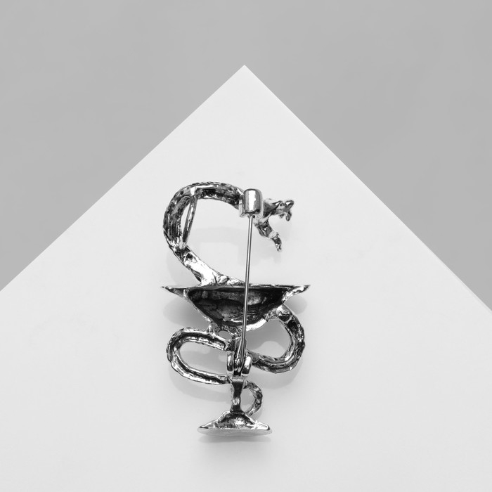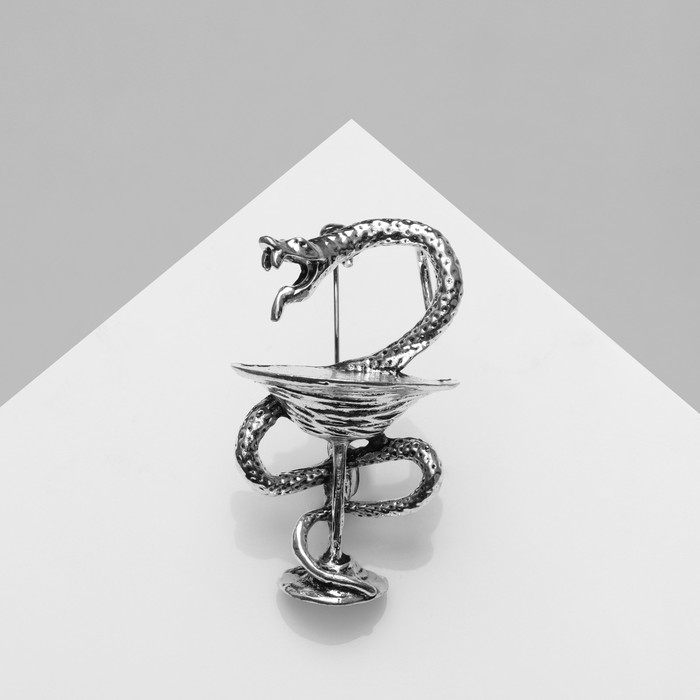 Брошь «Змея в геральдике» медицина, цвет чернёное серебро