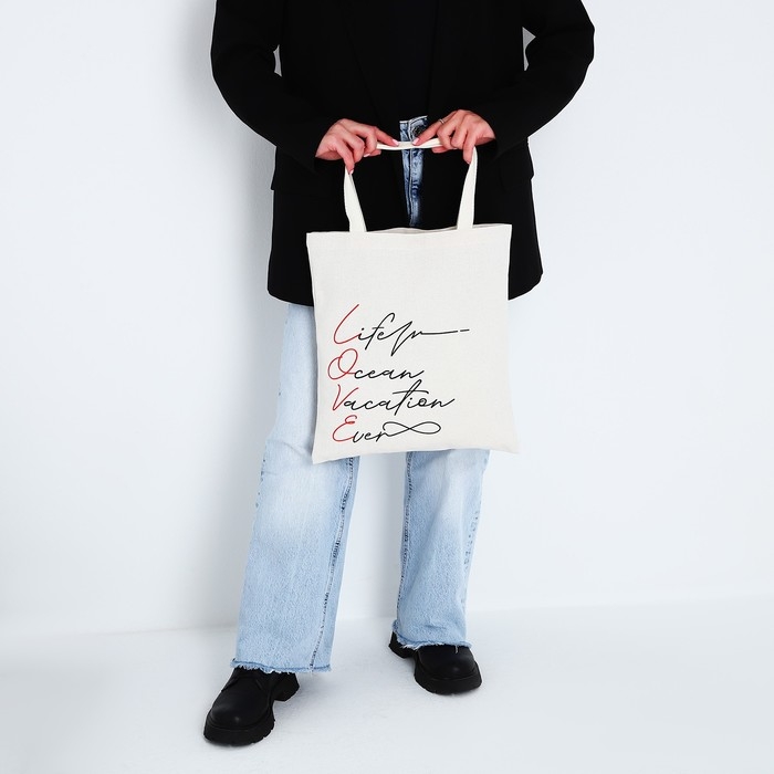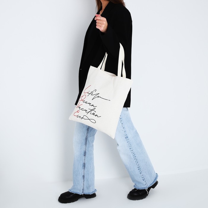 Сумка-шопер Love без молнии, без подкладки, цвет бежевый