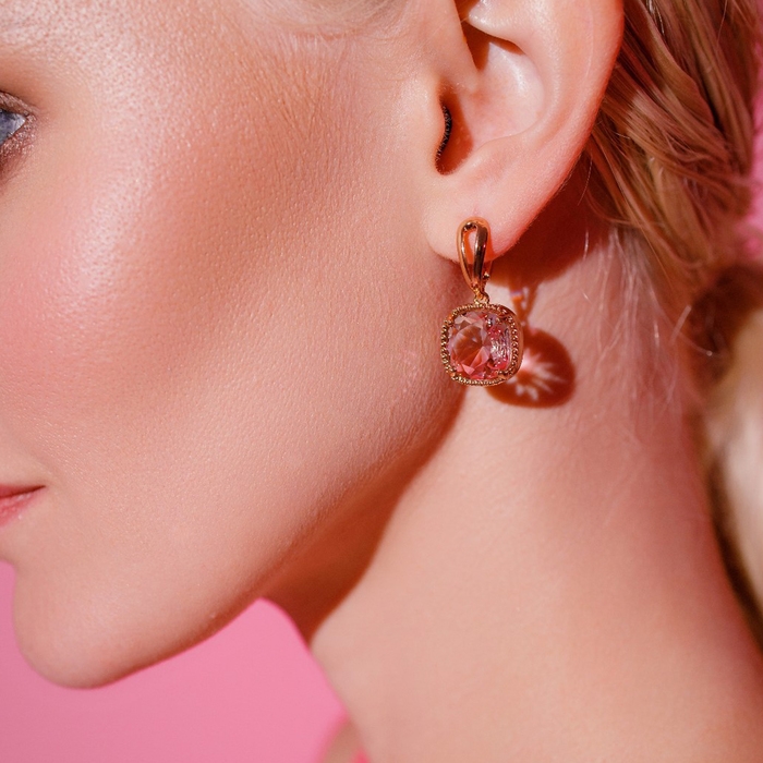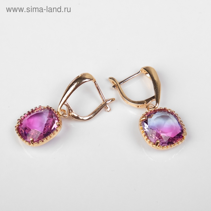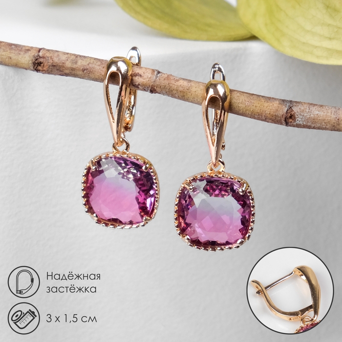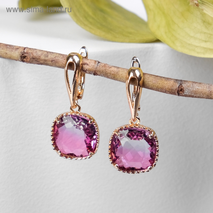 Серьги со стразами «Иллюзион» плавный квадрат, цвет малиново-фиолетовый в золоте