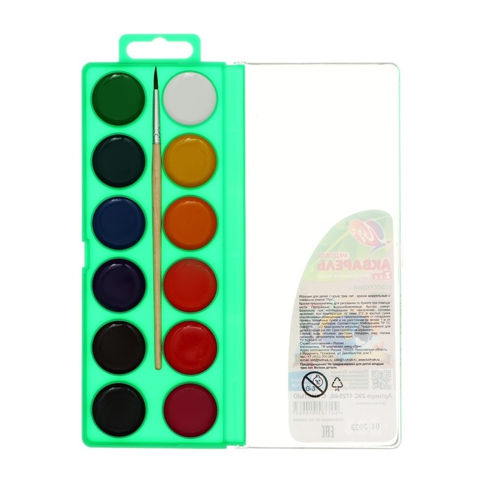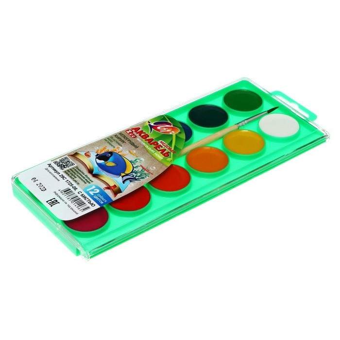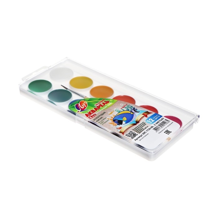 Краски акварельные, в кюветах, с кистью, 12 цветов