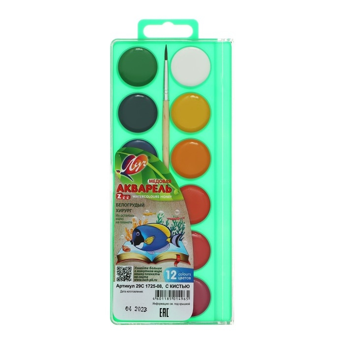 Акварель "Луч" ZOO, 12 цветов, с кистью