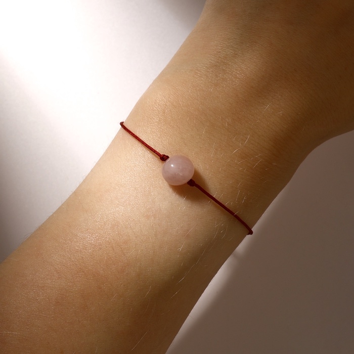Браслет желаний «Кварц розовый» на бордовой нити, длина регулируется