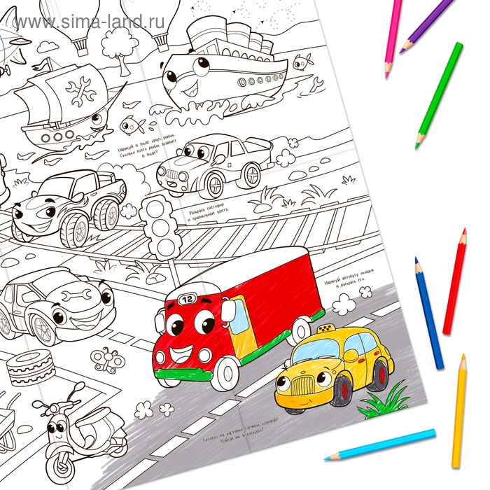 Раскраска - гигант для мальчиков «Большой и маленький транспорт», 59 × 84 см