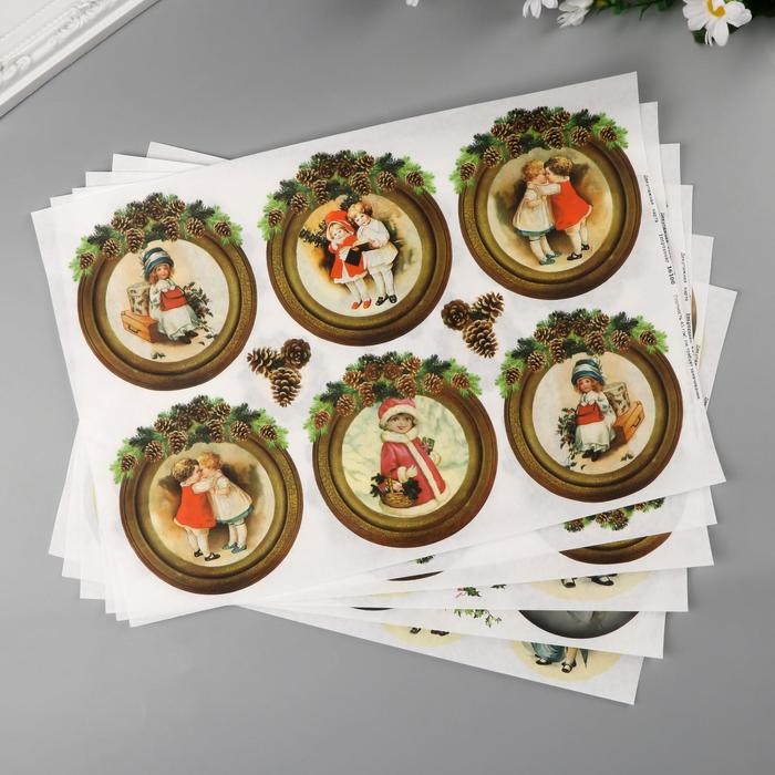 Набор декупажных карт 6 шт "Винтажные шары" А4, 45 г/м2