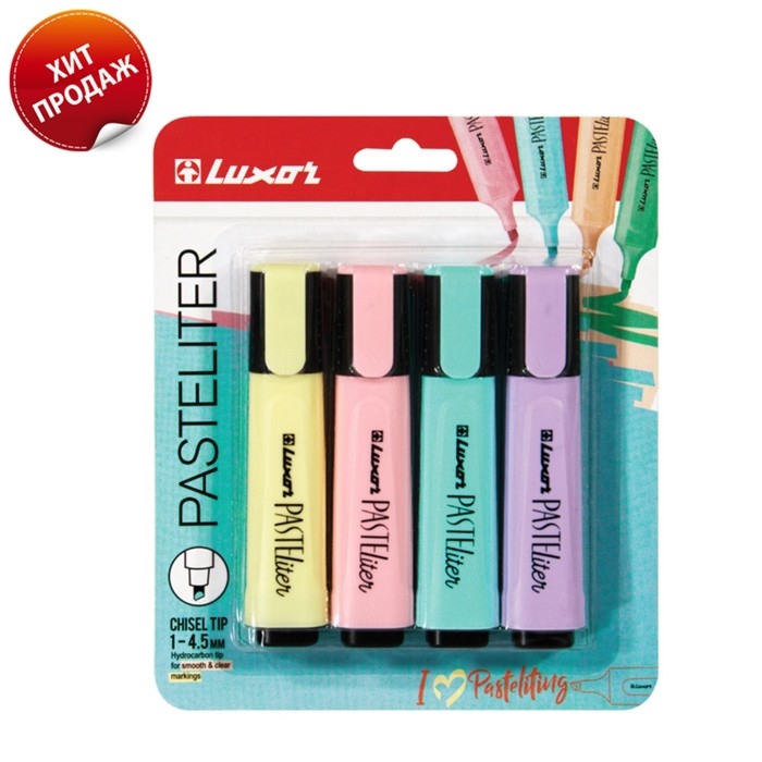 Набор маркеров-текстовыделителей 4 цвета, 1-5 мм, Luxor Pasteliter