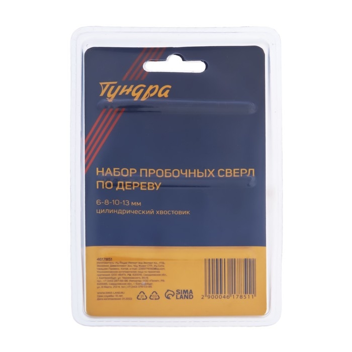 Набор пробочных сверл по дереву ТУНДРА, цилиндрический хвостовик, 6-8-10-13 мм, 4 шт.