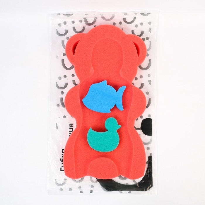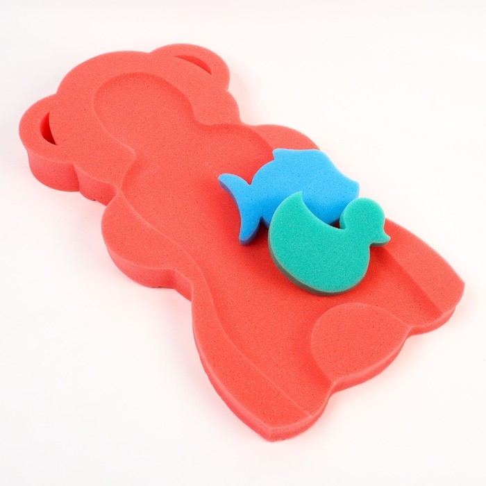Подкладка для купания макси «Мишка», цвет красный/розовый, 55х30х6см