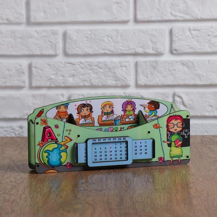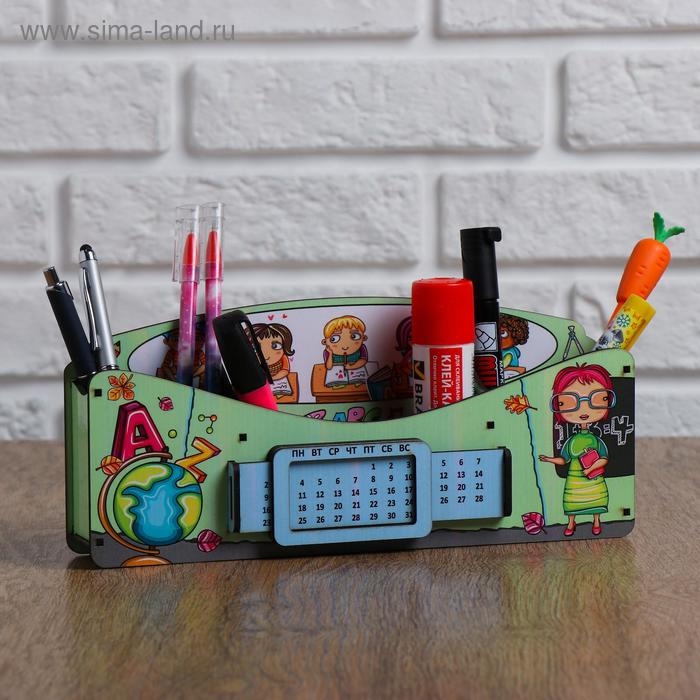 Органайзер для канцелярских предметов "Школа удобств", вечный календарь, цветной, зелёный