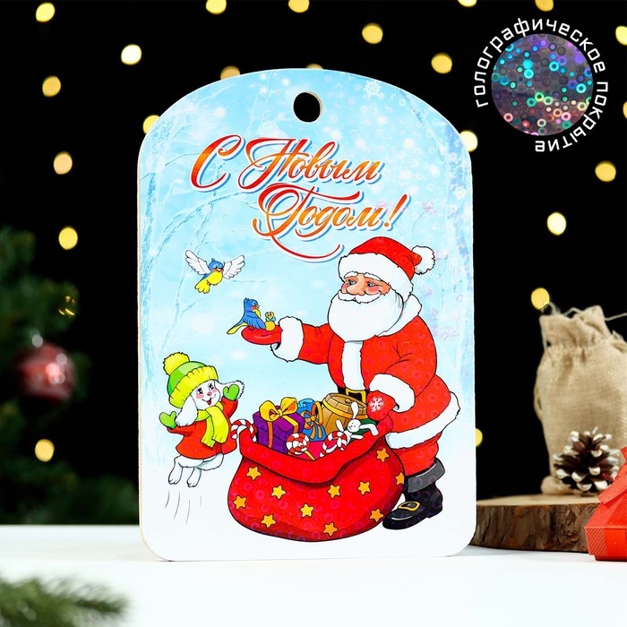 Доска разделочная "Новогодняя. С Новым годом! Дед Мороз, подарки лесу", цветная, 27х18 см