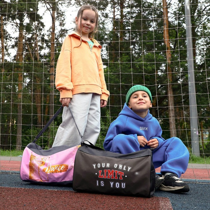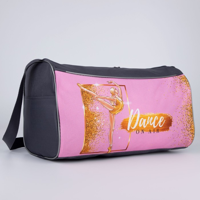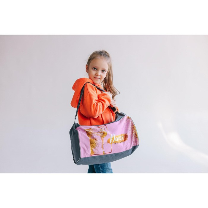 Сумка детская спортивная для девочки «Гимнастка», на молнии, наружный карман, цвет серый/розовый