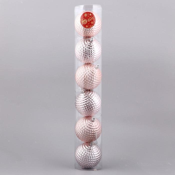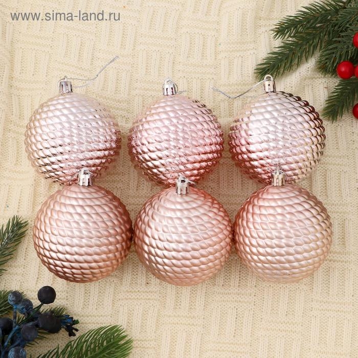 Набор шаров пластик d-8 см, 6 шт "Грация-грани" розовое золото
