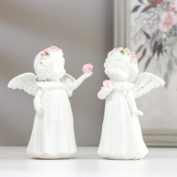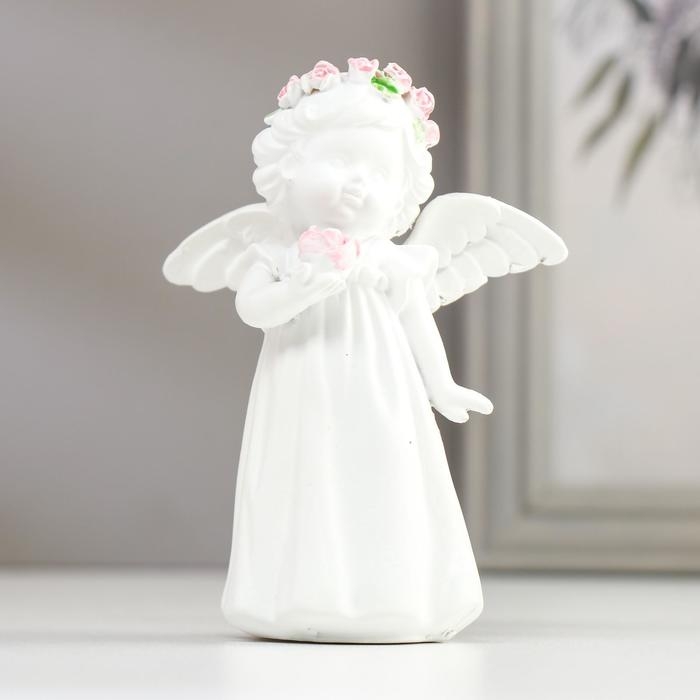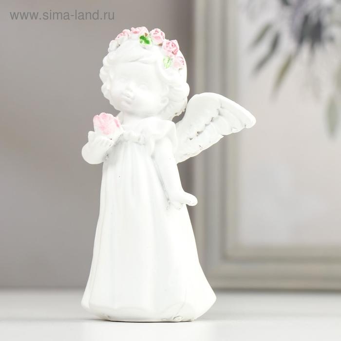 Сувенир полистоун "Белоснежный ангел-девочка в веночке с розой" МИКС 11х8,5х5 см