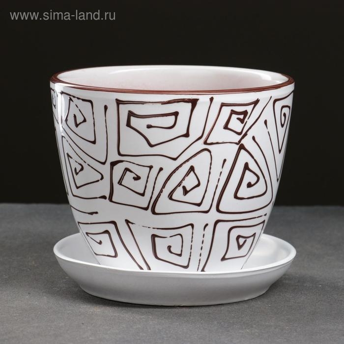 Горшок цветочный Абстракция белая 1 л