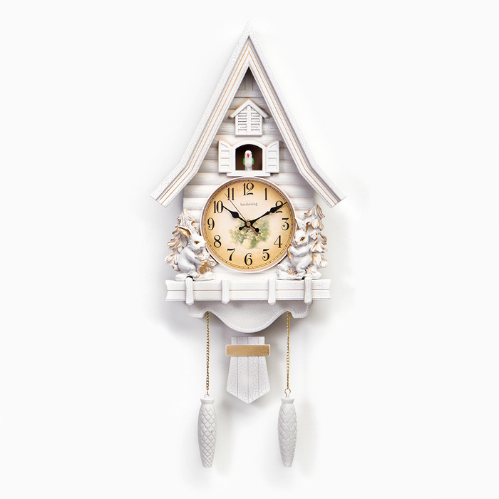 Часы настенные интерьерные большие с кукушкой "Лебеди", бесшумные, 63 х 8 х 32 см, белые