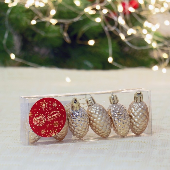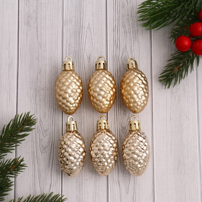 Ёлочная игрушка "Лесные шишки" (набор 6 шт) 2,5х4 см, золото