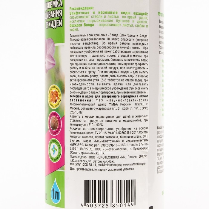 Спрей для Орхидей "Ивановская цветочная оранжерея" питательный, увлажняющий, 1 л