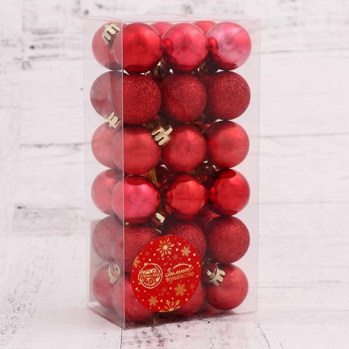 Ёлочные игрушки, шары новогодние , пластик, набор d-3 см, 36 шт "Туманный блеск" красный