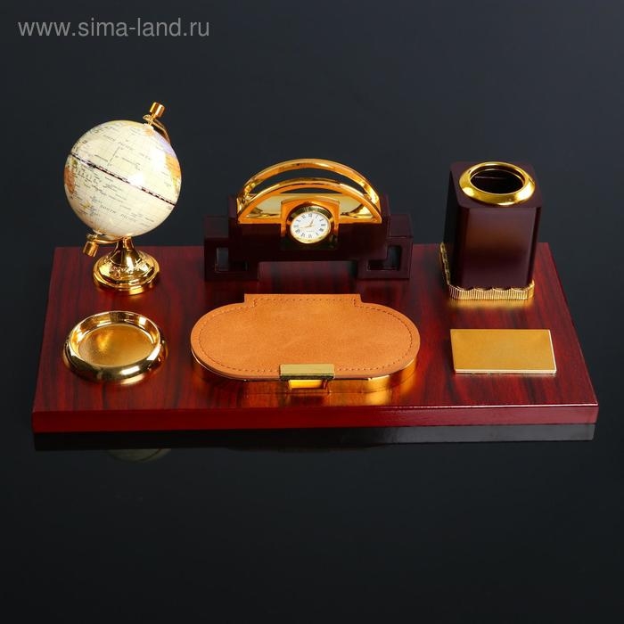 Набор настольный 6в1 (блок д/бумаг, подаст. д/печати, карандашница, часы, визитница,глобус)