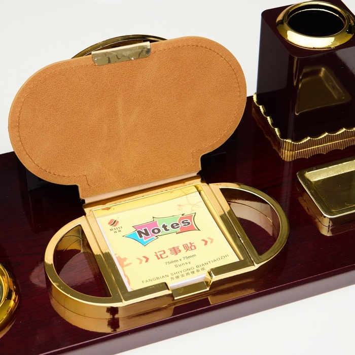 Компактный настольный набор поможет избежать хаоса на рабочем месте. Храните в нём канцелярские принадлежности или другие мелочи, чтобы правильно организовать пространство. К тому же изделие имеет минималистичный дизайн и выполнено под дерево, поэтому оно украсит собой любое место как декоративный элемент.