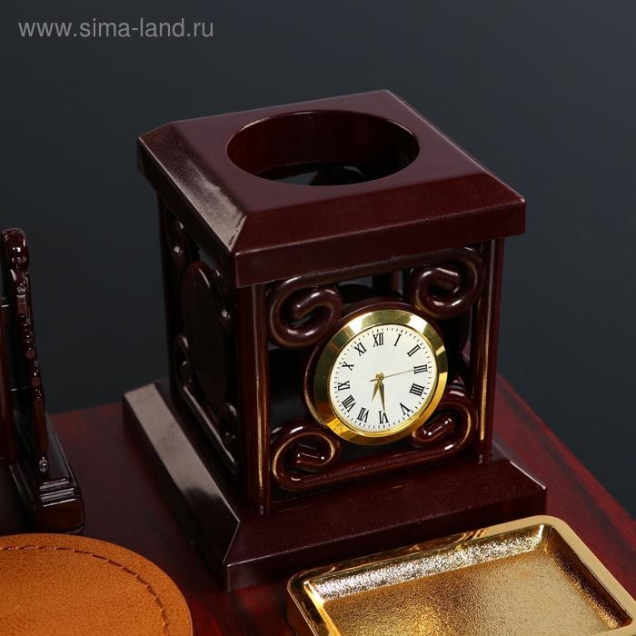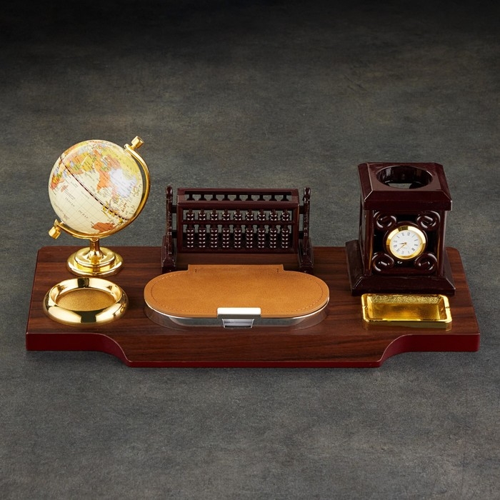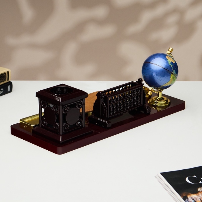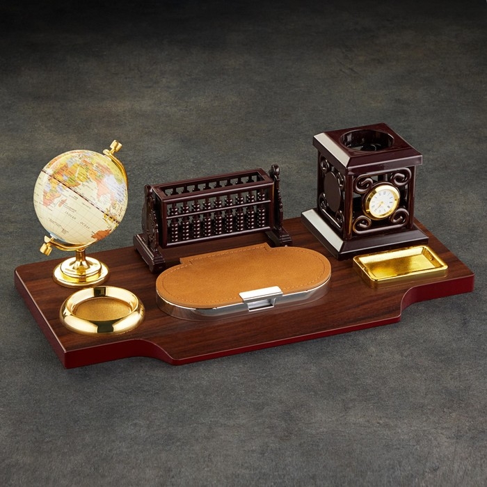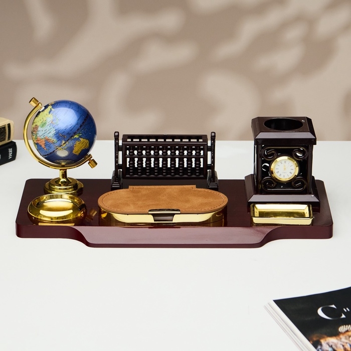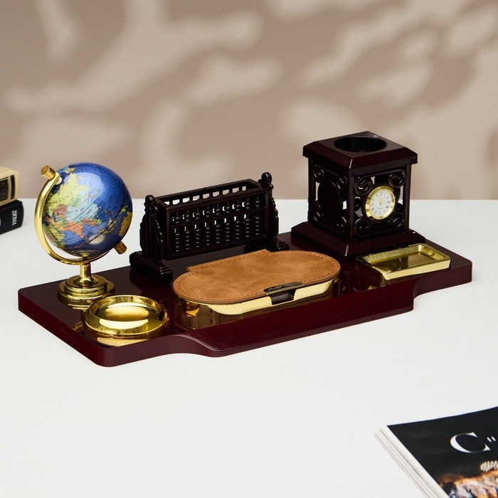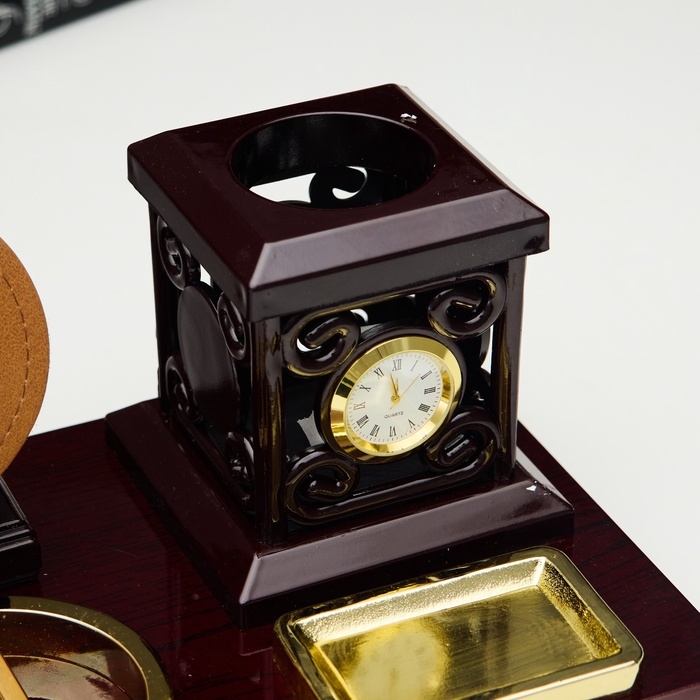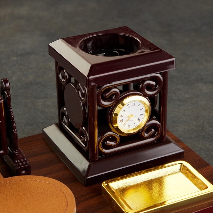Компактный настольный набор поможет избежать хаоса на рабочем месте. Храните в нём канцелярские принадлежности или другие мелочи, чтобы правильно организовать пространство. К тому же изделие имеет минималистичный дизайн и выполнено под дерево, поэтому оно украсит собой любое место как декоративный элемент.