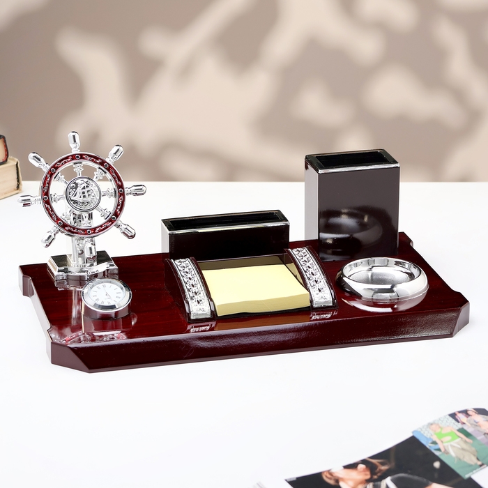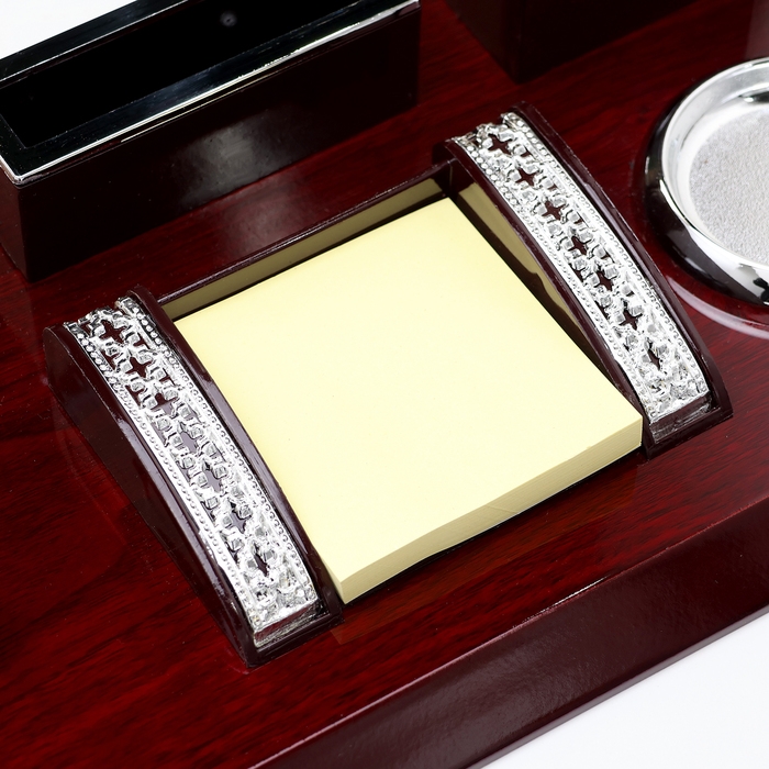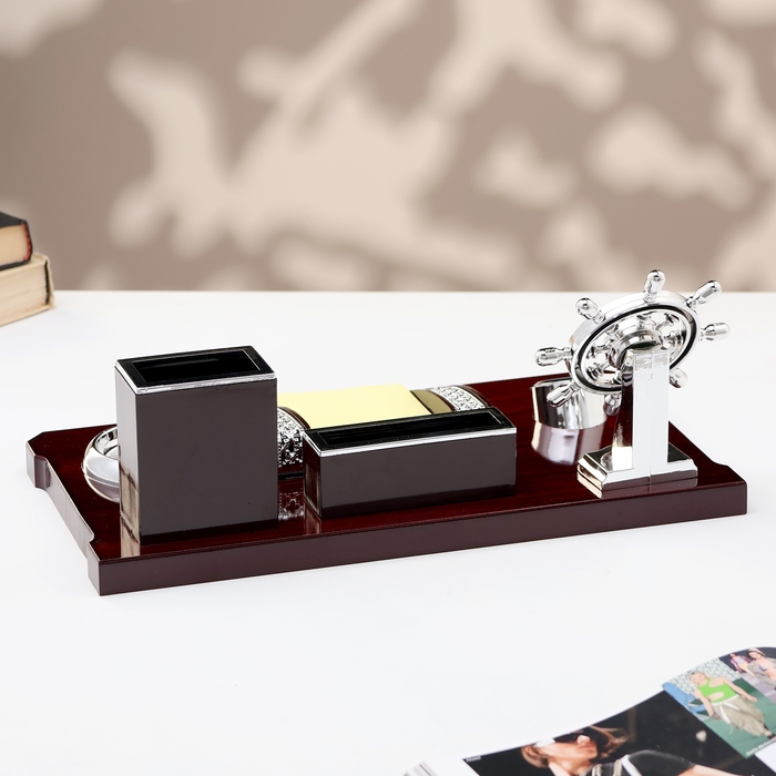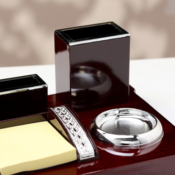 Компактный настольный набор поможет избежать хаоса на рабочем месте. Храните в нём канцелярские принадлежности или другие мелочи, чтобы правильно организовать пространство. К тому же изделие имеет минималистичный дизайн и выполнено под дерево, поэтому оно украсит собой любое место как декоративный элемент.