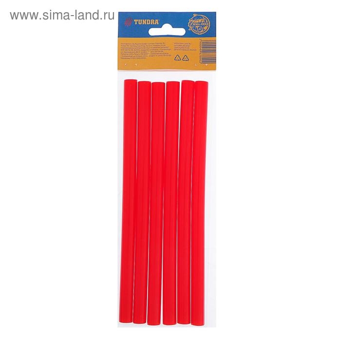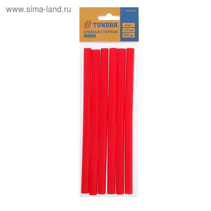 Клеевые стержни ТУНДРА, 11 х 200 мм, красные, 6 шт.