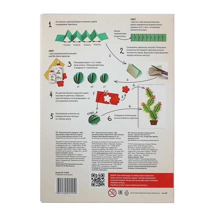 16 листов (8 цветов) цветной бумаги из качественно прокрашенной офсетной бумаги плотностью 70г/м2 упакованы в папке на 2 клапана из высококачественного мелованного картона плотностью 200г/м2. Честный размер А4 формата - 210 x 297мм.