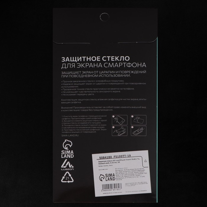 Защитное стекло 9D Luazon для Xiaomi Redmi 7a, полный клей, 0.33 мм, 9Н, черное