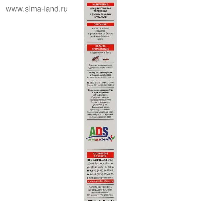 Инсектецидное средство в форме геля в шприце защитит ваш дом и избавит от всех видов тараканов и рыжих домовых муравьёв.Способ применения: гель наносят пунктиром на поверхности или размещают на подложках в местах появления насекомых. Гибелль тараканов наступает на 2-3 сутки, муравьёв - через 1 сутки. Повторное применение рекомендуется при появлении насекомых, но не ранее чем через 4 недели, т.к. средство обладая кишечно-контактным действием, сохраняет свою эффективность в течение 1,5-2 месяцев.Состав: фипронил 0,05%, стабилизатор, консервант, гелеобразователь, битрекс, вода, пищевые аттрактанты.