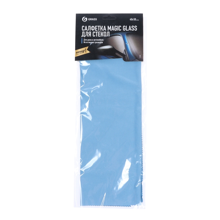 Салфетка для стёкол и зеркал Grass Magic, голубая, микрофибра, 40×50 см