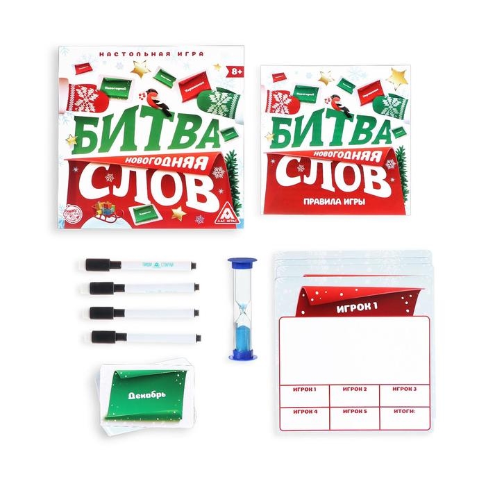 Новогодняя настольная игра «Новый год: Битва слов», 20 карт, 4 планшета, 4 маркера, 8+