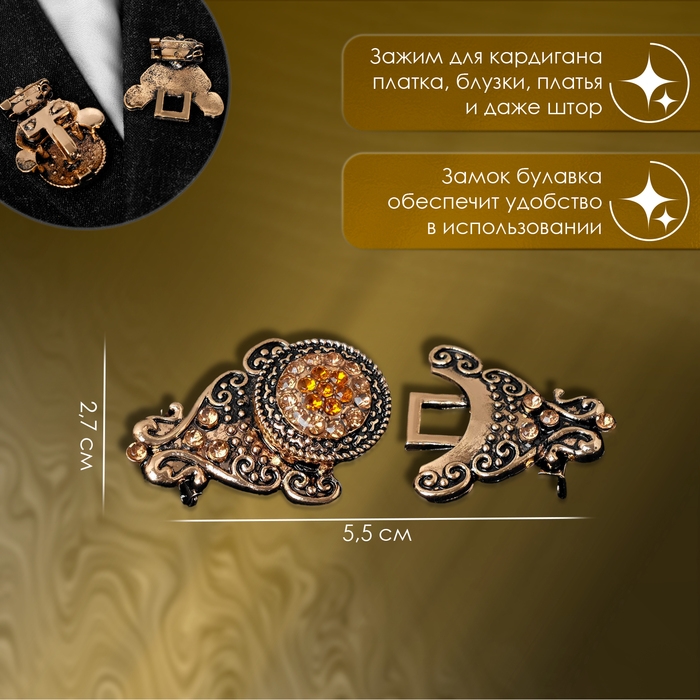 Зажим для кардигана - изысканный аксессуар, в том числе на поверхности платья, шали или свитера, данный элемент можно использовать даже для штор. Зажимы актуальны как в повседневном так и праздничном образе, добавляют очарования вашей одежде при сочетании различных нарядов.