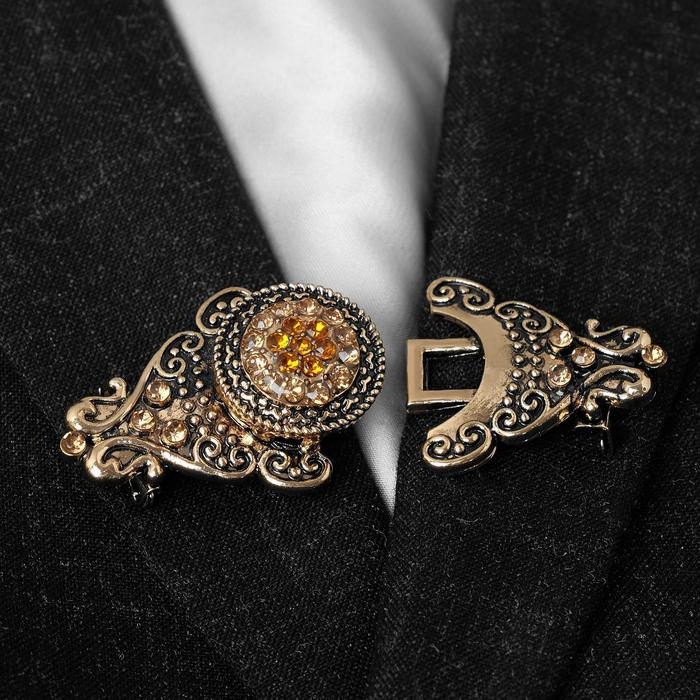 Зажим для кардигана «Орден», цвет коричневый в чернёном золоте