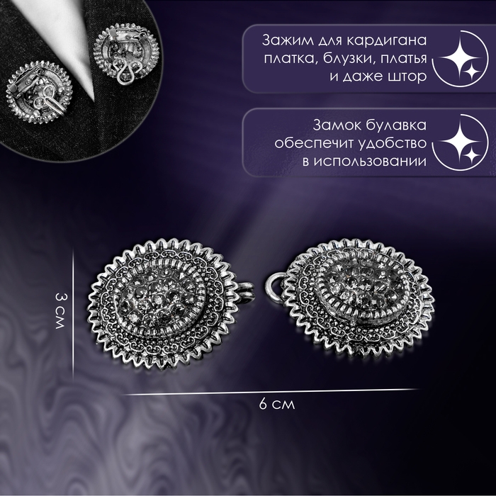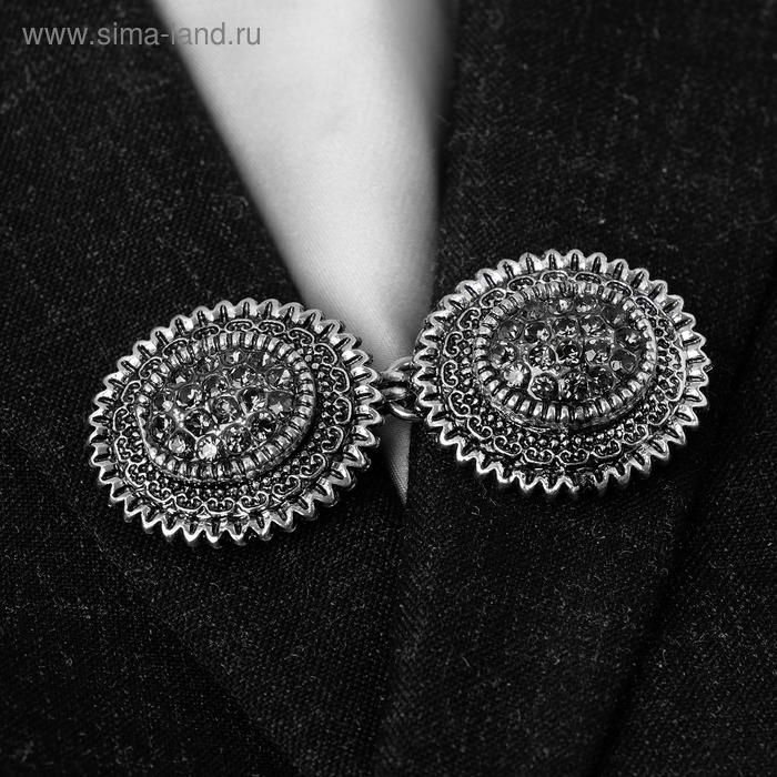 Зажим для кардигана «Овал» в рамке, цвет серый в чернёном серебре