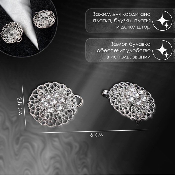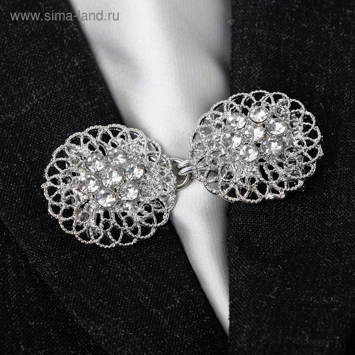 Зажим для кардигана «Кружево», цвет белый в серебре