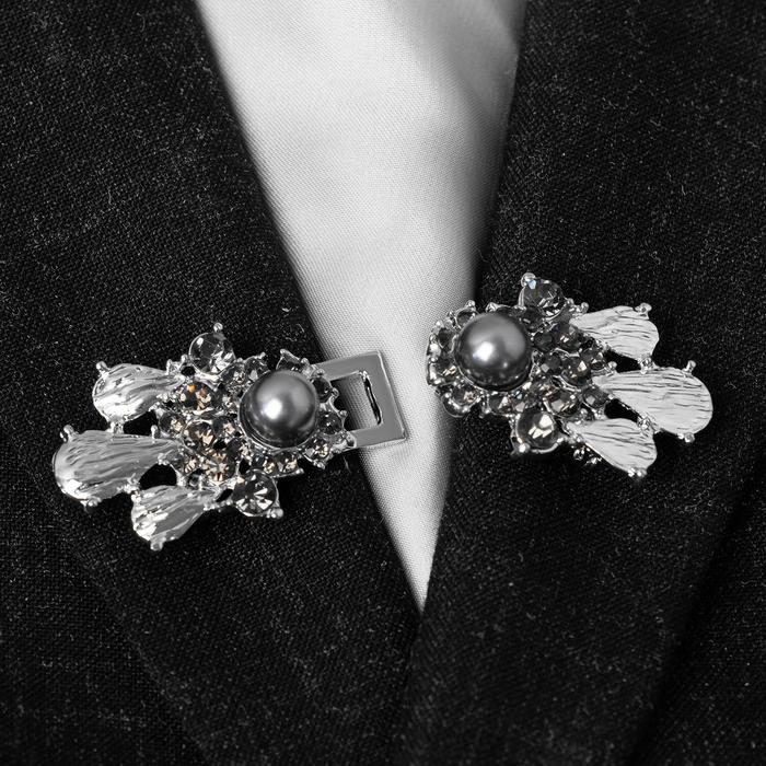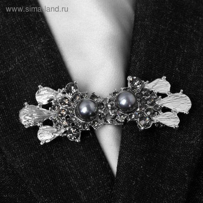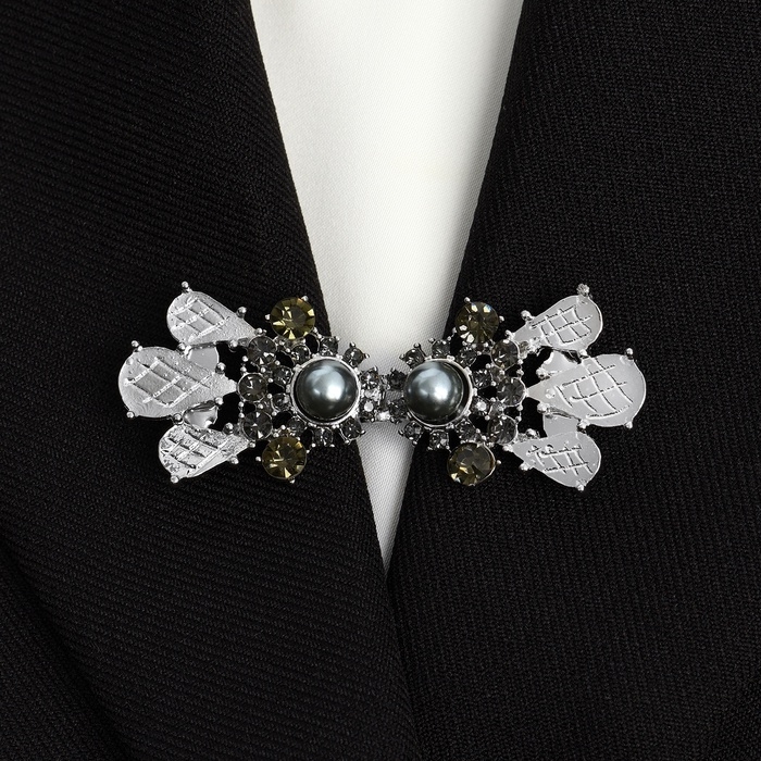 Зажим для кардигана «Грация», цвет бело-серый в серебре