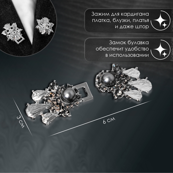 Зажим для кардигана «Барокко», цвет серый в серебре