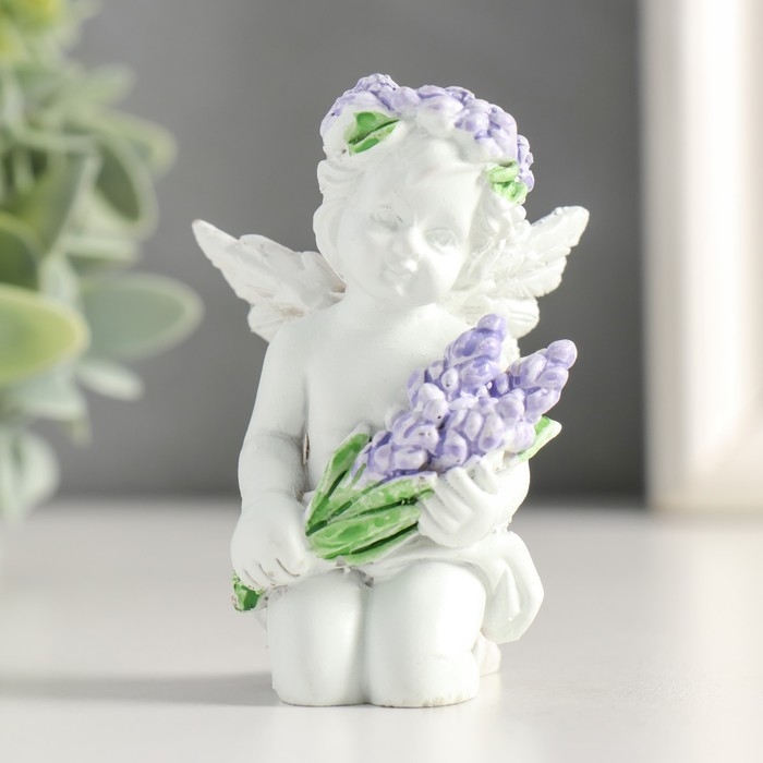 Сувенир полистоун "Белоснежный ангелок с лавандой, в венке из лаванды" МИКС 7,2х4,8х4 см