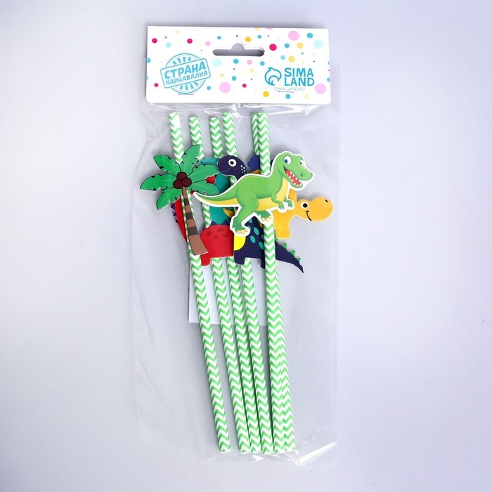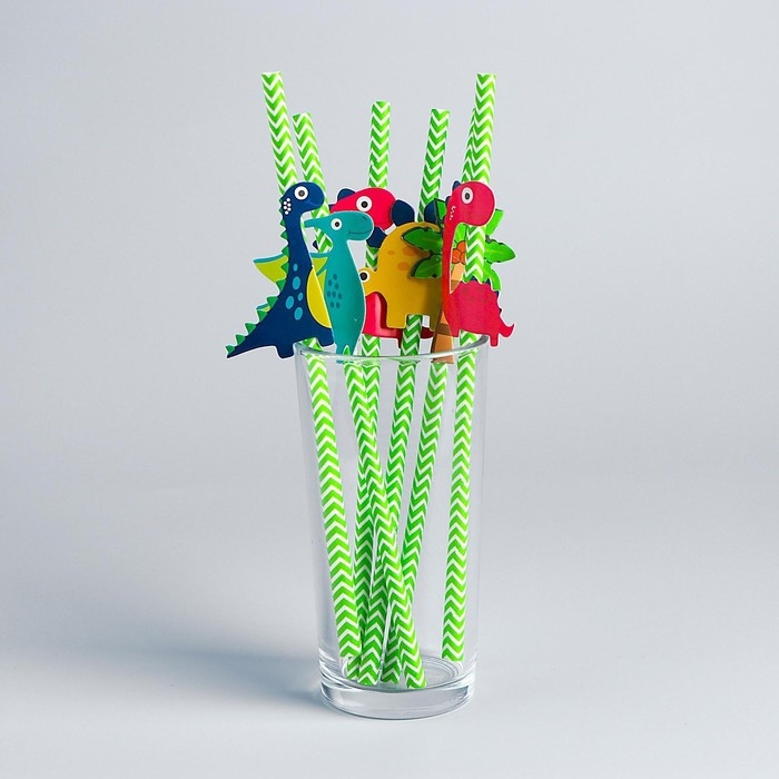 Трубочки для коктейля «Динозаврики», набор 6 шт.