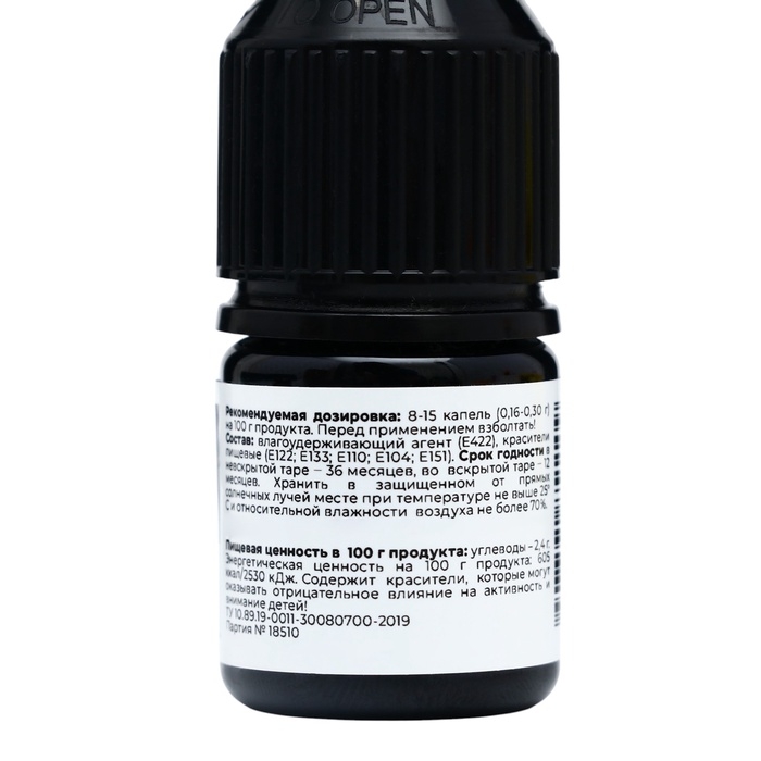 Область применения: для окрашивания продуктов питания и различных кондитерских изделий (теста, мастики, айсинга, марципана, крема и так далее), а также для детского творчества (мыловарение, слаймы).