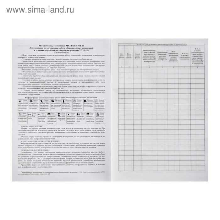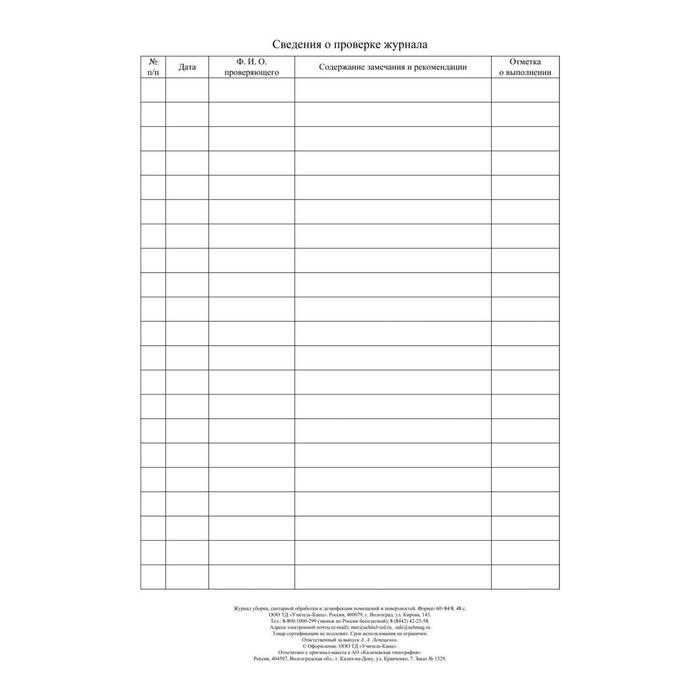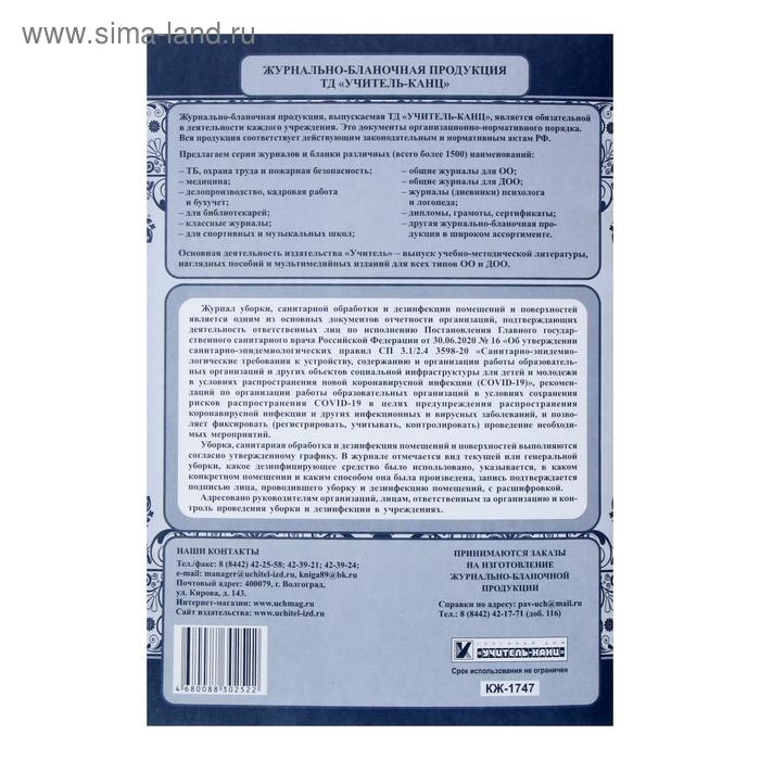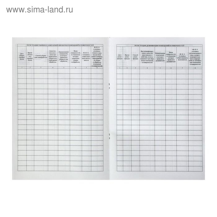Журнал уборки, санитарной обработки и дезинфекции помещений и поверхностей 24 листа, блок писчая бумага 60 г/м²