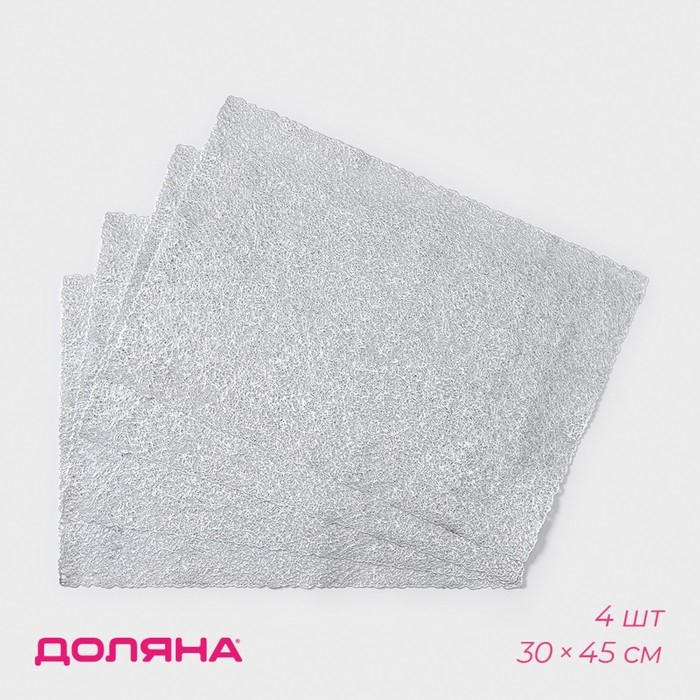 Салфетки сервировочные на стол Доляна «Соломка», 30×45 см, 4 шт, серебряные