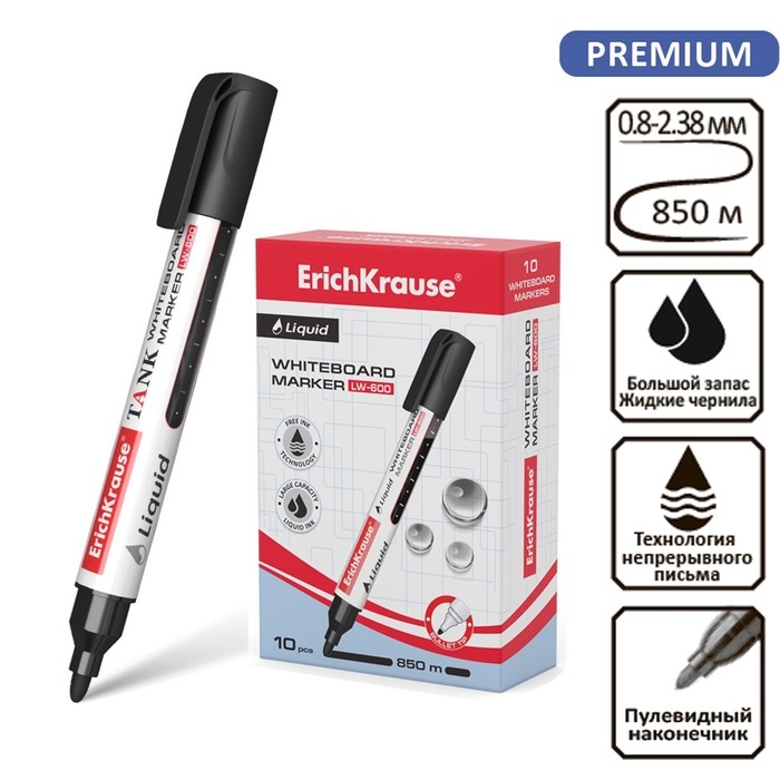 Маркер для доски ErichKrause Tank LW-600, с жидкими чернилами, черный