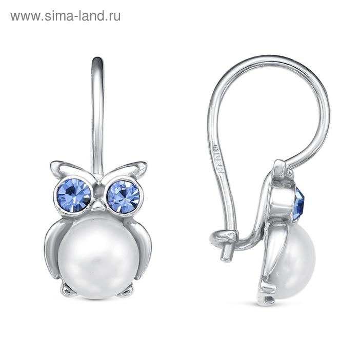 Серьги детские «Совушка», посеребрение, цвет бело-голубой