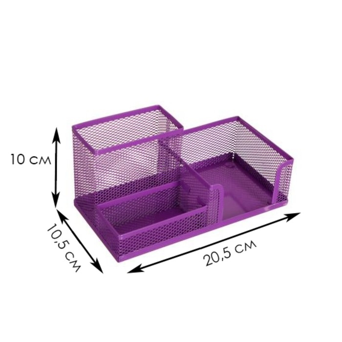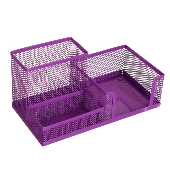 Подставка для канцелярских мелочей, 3 отделения, сетка, металл, сиреневая
