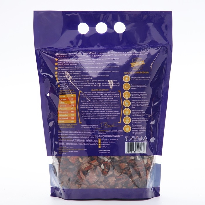 Готовый грунт для выращивания и пересадки орхидей "УльтраЭффект" Оптимал 19-37 мм — Производится в России, только из 100% натуральных ингредиентов без применения химии! Грунт "УльтраЭффект" произведен по собственной разработанной рецептуре с использованием новейших технологий на Российском Научно Производственном Объединении "БиоТехнолоджи" специально для выращивания орхидей всех видов и сортов.