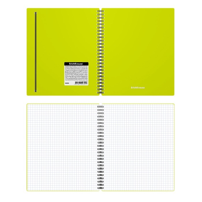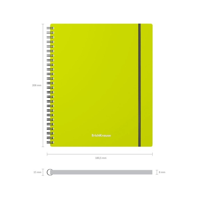 Тетрадь на спирали, 80 листов в клетку, ErichKrause Neon, пластиковая обложка, на резинке, блок офсет 100% белизна, МИКС