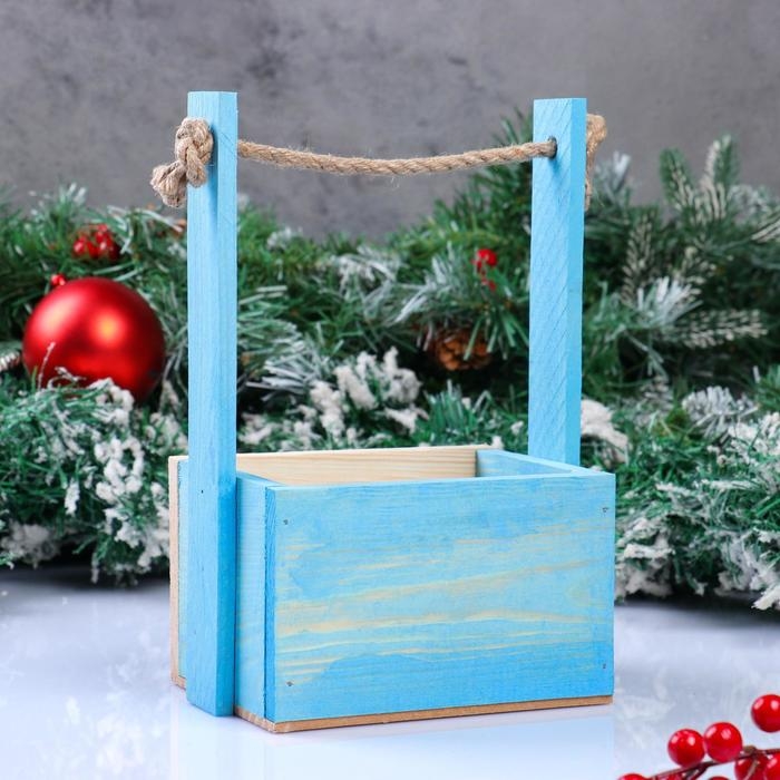 Кашпо деревянное 24.5×13.5×9 см "Двушка Лайт", двухреечное, голубой Дарим Красиво