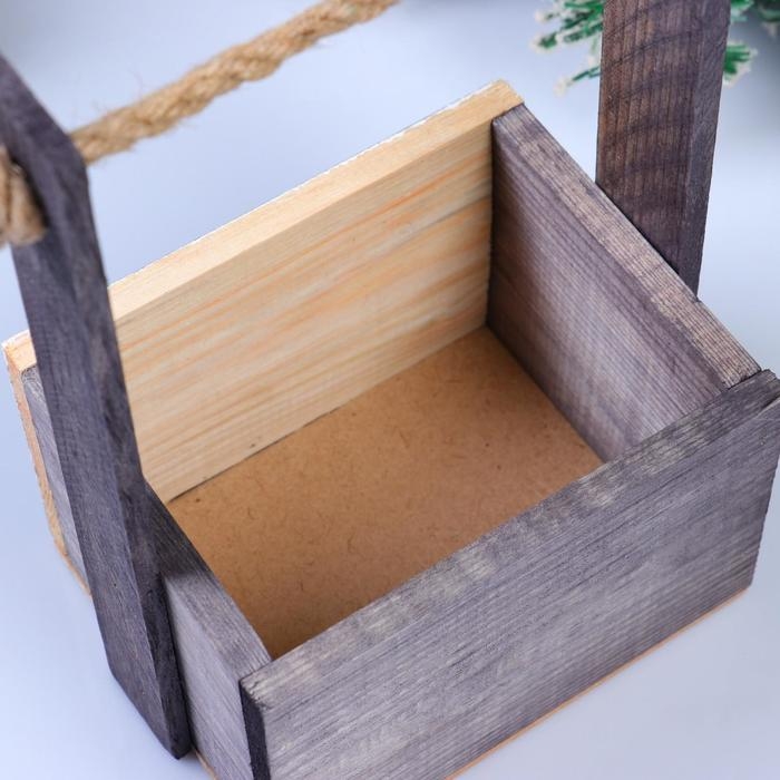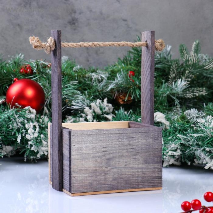 Кашпо деревянное 20×12.5×20 см Стелла Моно, с ручкой, натуральный Дарим Красиво